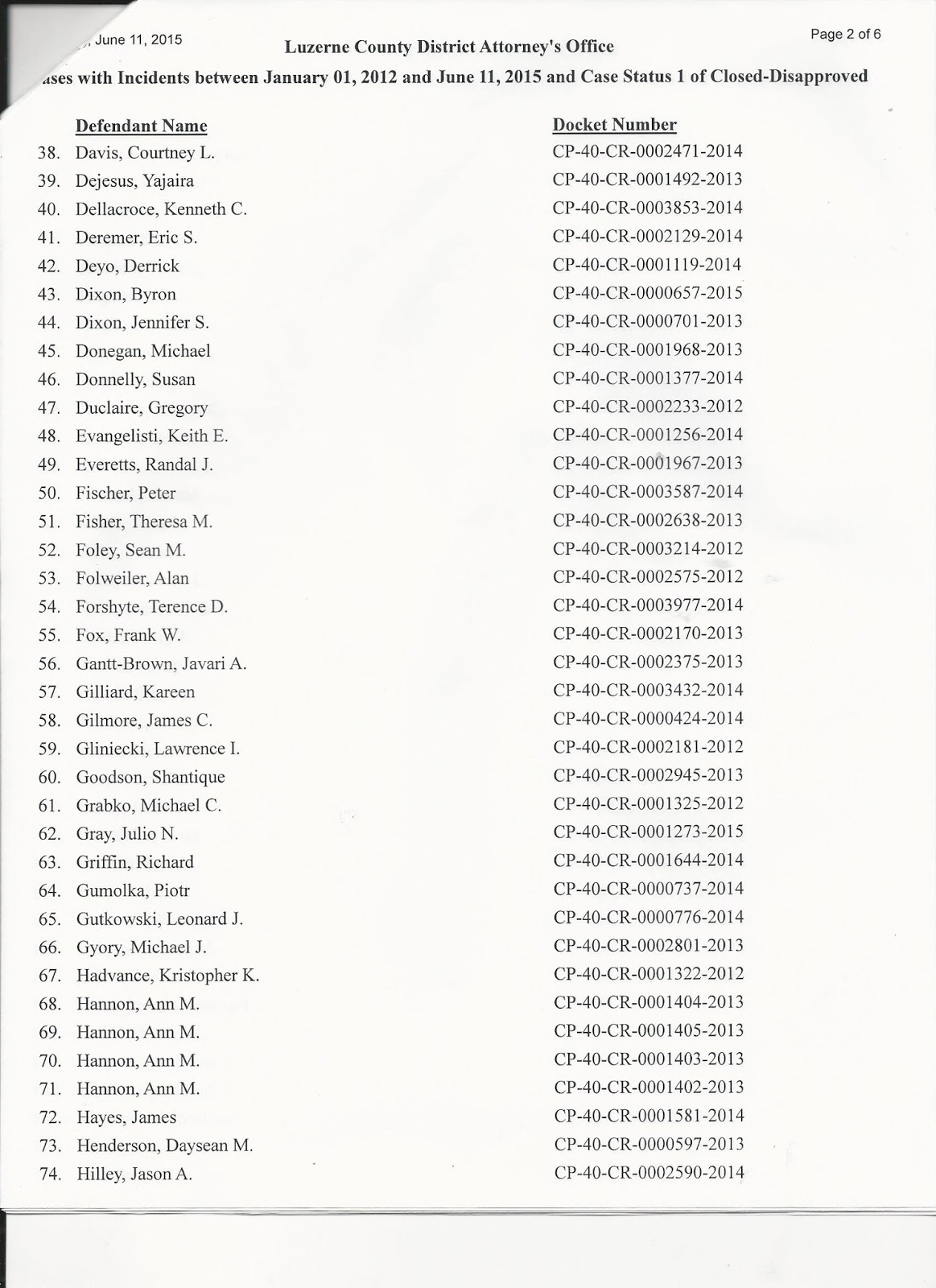 And lastly... Stefanie (Citizen's Voice) used the number of 24 to refer to the number of cases tossed out. I won't argue here... I will just show you all of the 189 cases that were tossed.